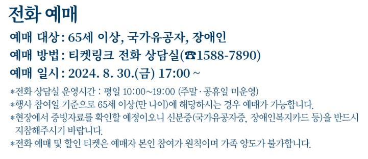 - 예매 일시 : 2024년 08월 30일 (금) 17:00 ~