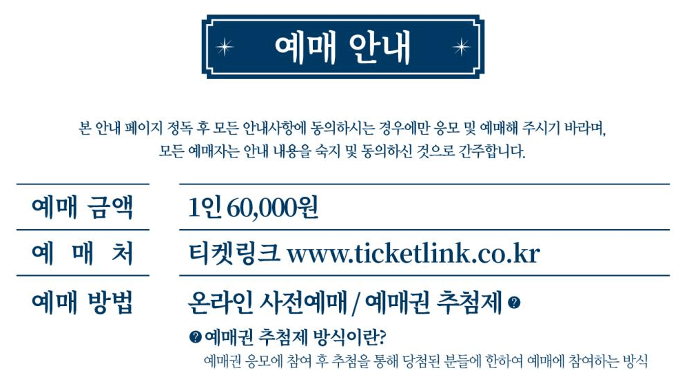 - 예매 방법 : 티켓링크 고객센터 1588-7890