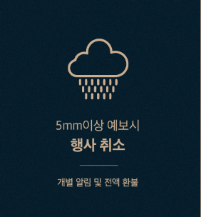 - 우천 예보: 행사 시간 내 5mm 이상 우천이 예보된 경우, 안전사고 예방 및 관람객 편의를 위해 야외 동선이 일부 변경될 수 있습니다.